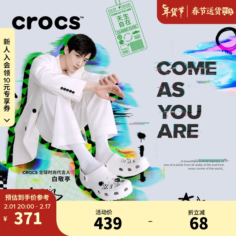 crocs白敬亭同款卡骆驰经典洞洞鞋|10001 白色-100 39(240mm)价格:439.00元!
