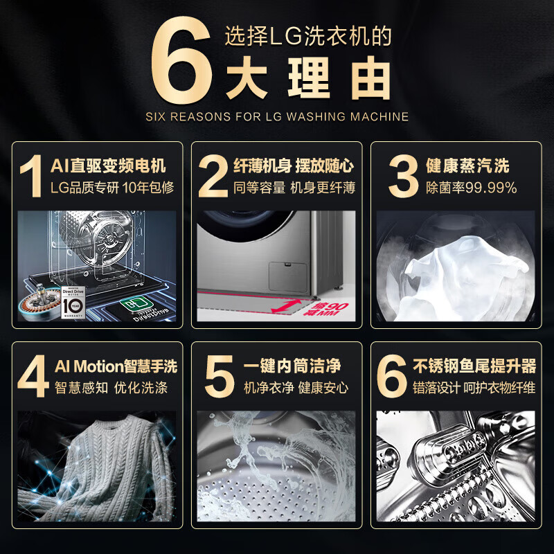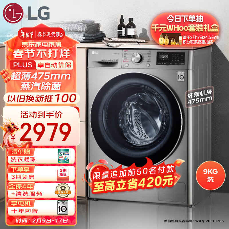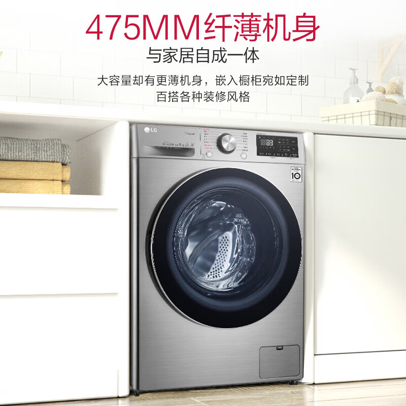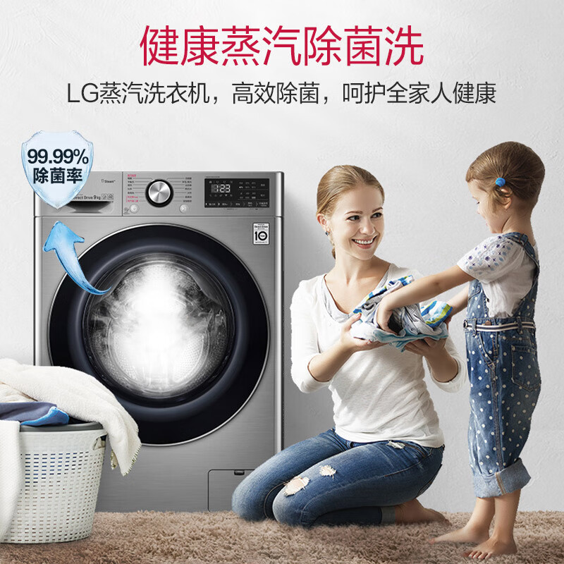 LG 9KG超薄滚筒全自动洗衣机小家用 475mm超薄机身 直驱变频 蒸汽除菌 智能手洗 羽绒洗 银 FCX90Y2T价格:3399.00元!