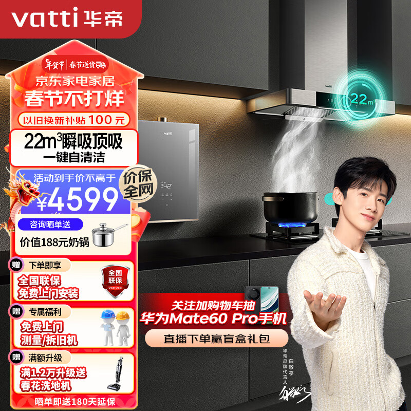 华帝(VATTI)抽油烟机家用欧式油烟机燃气灶具热水器厨房三件套 i11143+72B+152-16(天然气)价格:4599.00元!
