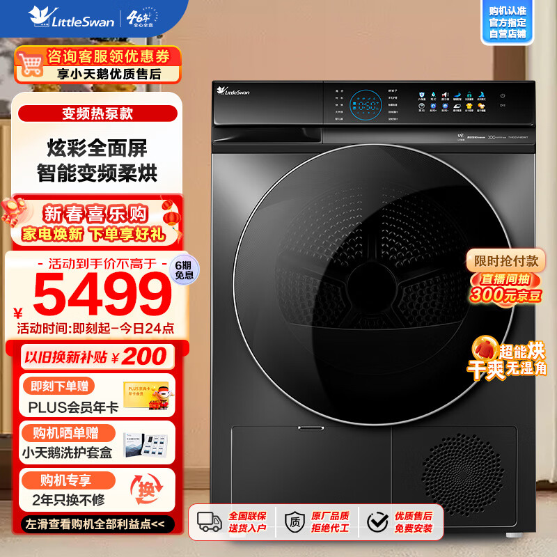 小天鹅(LittleSwan) 烘干机 热泵式 干衣机家用 紫外线除菌 BLDC变频电机 10公斤 京东小家 TH100VH89WT价格:5499.00元!