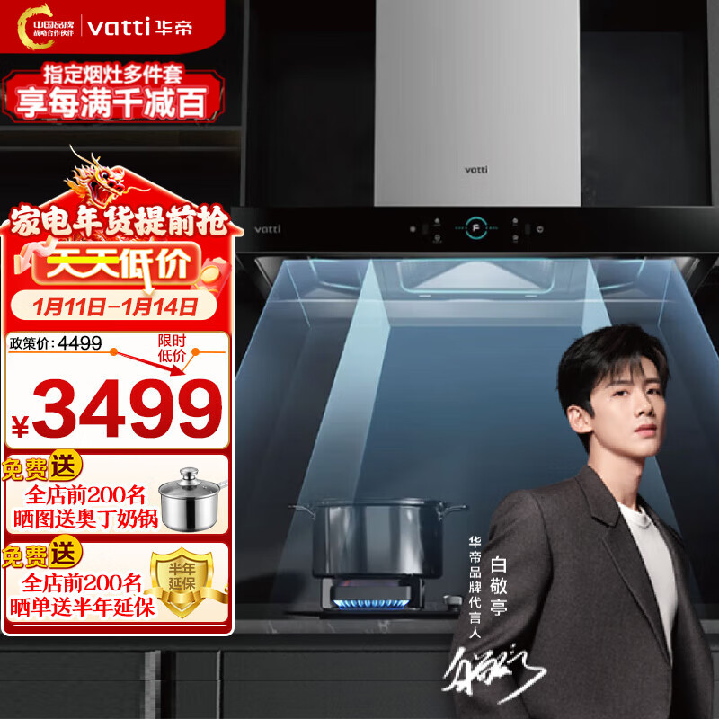华帝(VATTI)油烟机 欧式抽油烟机燃气灶套装家用三腔变频.创世S7自动清洗24立方爆炒风量爆吸i11207厨房三件套 万人加购 烟灶套装(207烟机+5.0kW天然气)价格:3699.00元!