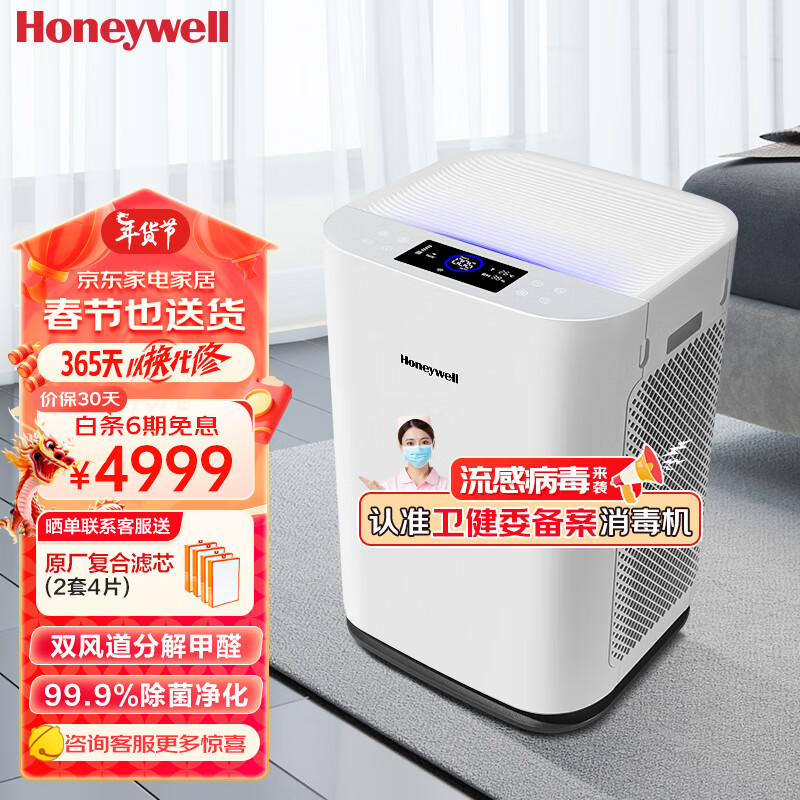 霍尼韦尔(Honeywell)空气净化器除甲醛 新房疾速除甲醛H-Speed 卫健委备案杀菌除过敏空气消毒机KJ760F-P22W价格:4999.00元!