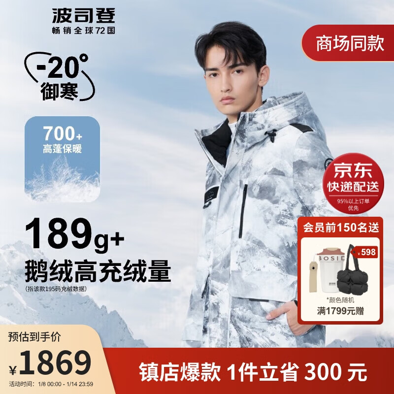 波司登极寒2023鹅绒羽绒服男款90绒加厚连帽时尚工装外套B30142311价格:2169.00元!