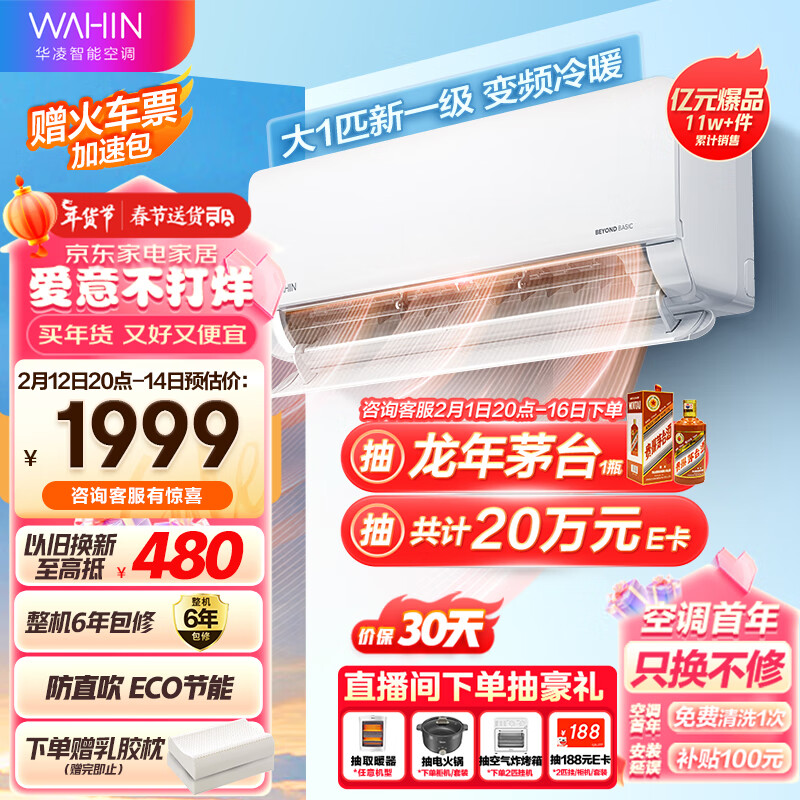华凌空调新一级能效变频冷暖大风口1匹客厅卧室挂式空调挂机智能遥控京东小家 KFR-26GW/N8HL1以旧换新价格:1999.00元!