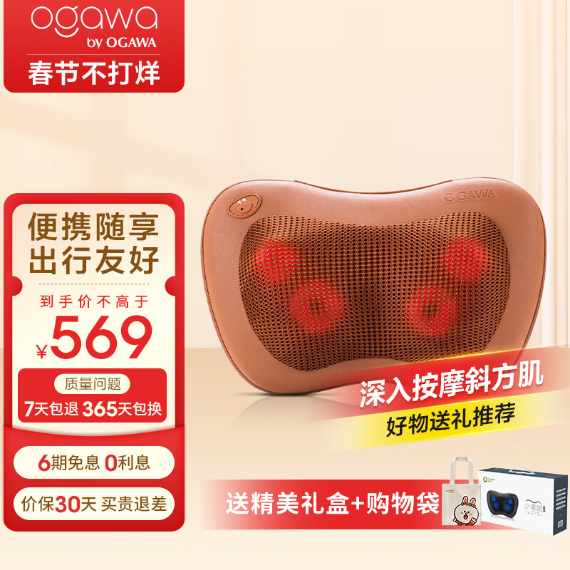 奥佳华(OGAWA)按摩枕颈椎肩颈部腰部按摩仪可全身多功能热敷按摩靠枕家用按摩器小腰姬OG2101节日生日礼物礼盒装 充电版 焦糖色价格:699.00元!