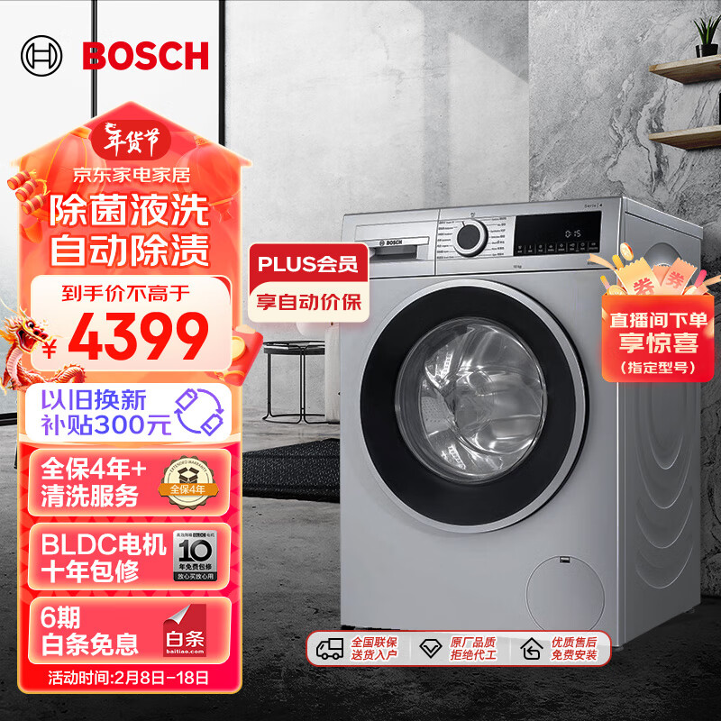 博世(BOSCH)【净效除菌】10公斤变频全自动家用 大容量1200转除菌 自动除渍 15分钟快洗滚筒洗衣机 WGA152X80W价格:4399.00元!