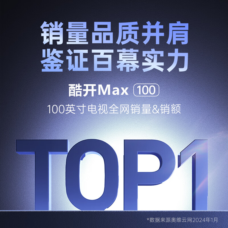 酷开创维Max100 100英寸电视1200nits峰值亮度 分区控光4+128G 144Hz高刷护眼声控智能电视机100P60 P价格:15999.00元!