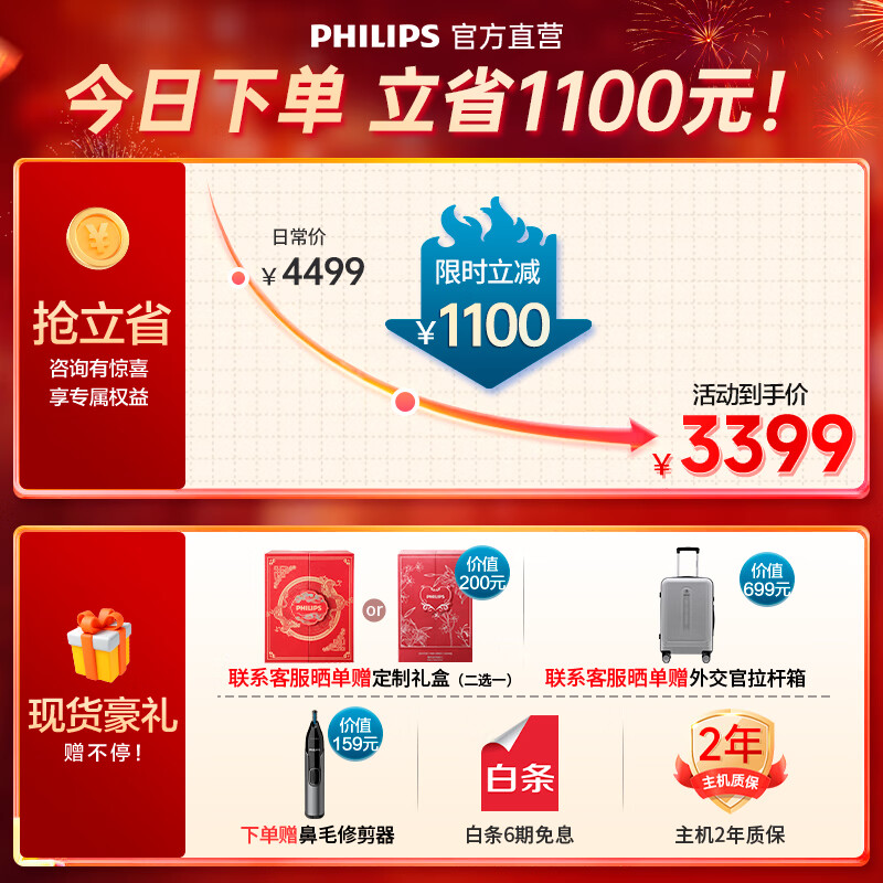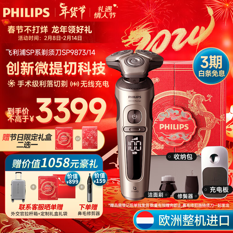 飞利浦(PHILIPS)男士电动剃须刀蜂巢奢享SP9系SkinIQ科技原装进口【新年/情人节礼物龙年定制礼盒送男友送老公】价格:4399.00元!
