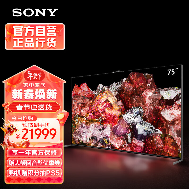 索尼(SONY)【官方直营】XR-75X95EL 75英寸 MiniLED 4K120Hz 旗舰影院电视 智能摄像头 XR认知芯片 京配上门价格:21999.00元!