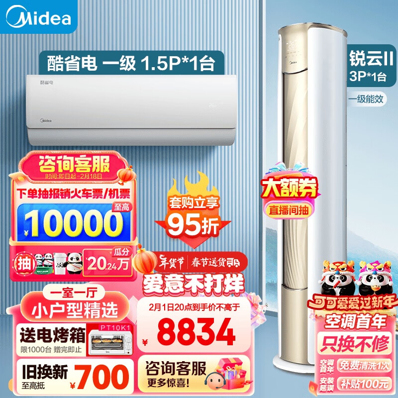 美的(Midea)小户型精选 套购一站式 锐云2代空调套装 (1.5匹酷省电一级+3匹锐云)价格:9298.00元!