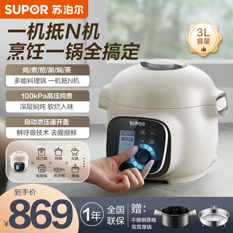 苏泊尔(SUPOR)电锅智能家用多功能自动排气高压锅电饭煲不沾可预约料理快锅电饭锅3L容量SY-30YZ100价格:869.00元!