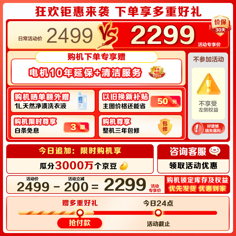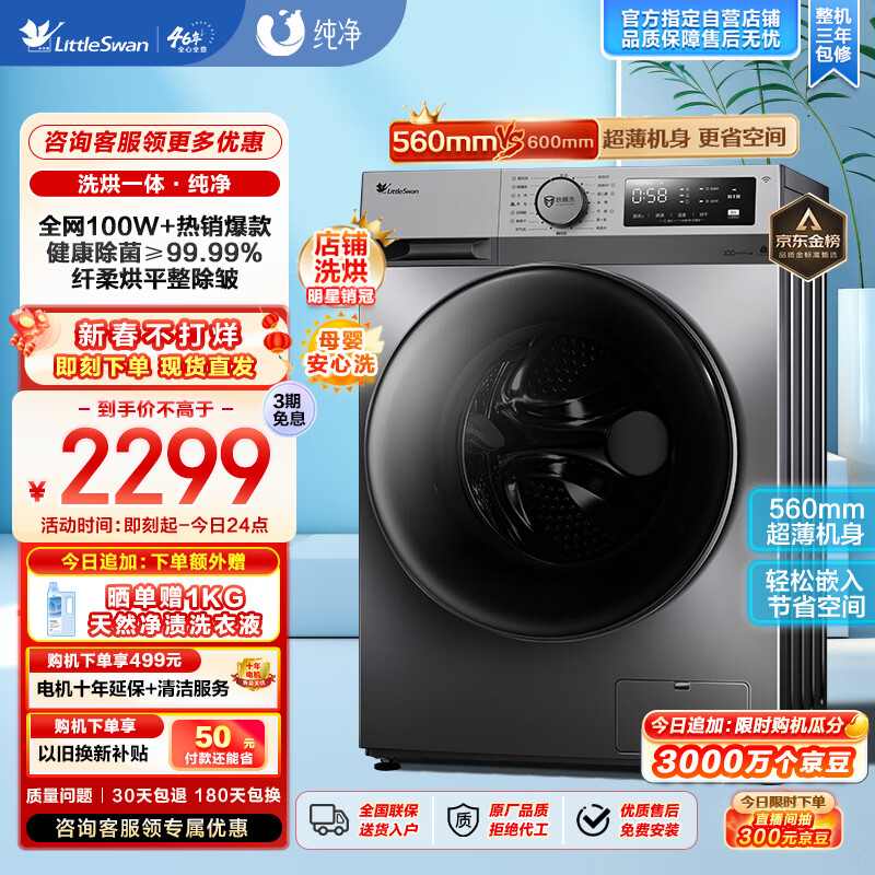 小天鹅(LittleSwan)滚筒洗衣机全自动 洗烘一体机 深层除菌螨 蒸汽速烘 10公斤大容量 以旧换新 TD100PURE价格:2199.00元!