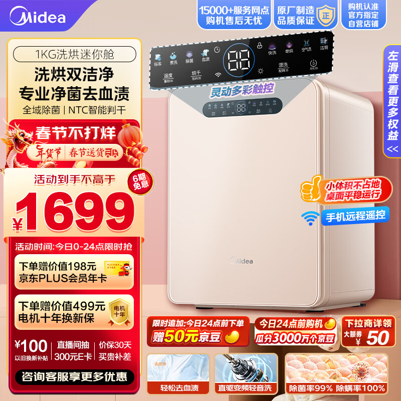 美的(Midea)1KG迷你洗衣机全自动 洗烘一体迷你舱 内衣裤洗衣机小型 迷你滚筒洗衣机 婴儿洗衣机 MND10VDW0E价格:1699.00元!