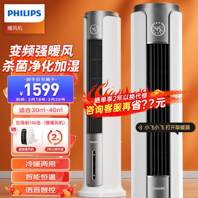 飞利浦(PHILIPS)取暖器家用暖风机电暖气电暖器加湿负离子净化杀菌冷暖两用语音APP遥控热风机烤火炉 ACR5166TN价格:2199.00元!