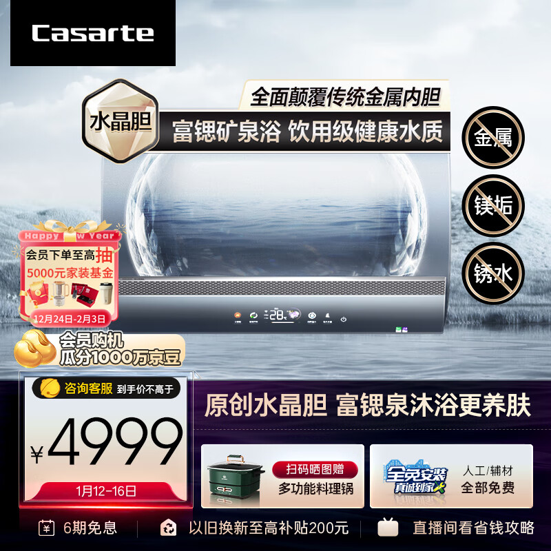卡萨帝(Casarte)60升银河家用储水式电热水器原创水晶胆卫生间富锶汤泉变频速热一级能效CES60H-PROS3KCEK02U1价格:5262.00元!