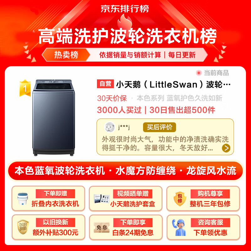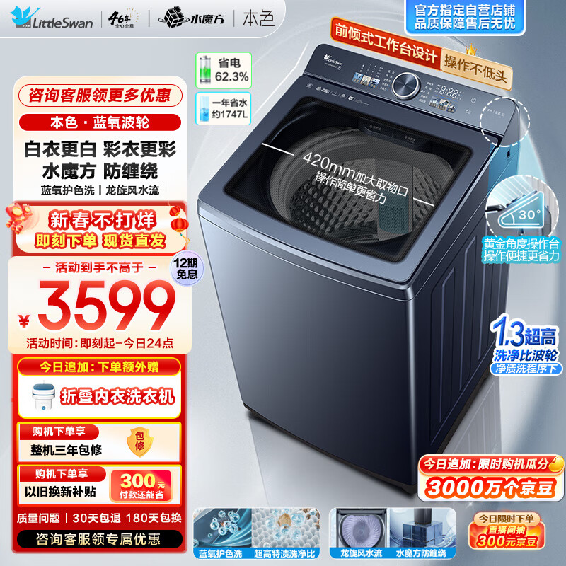 小天鹅(LittleSwan)波轮洗衣机全自动 本色蓝氧【TBM100M093DZ】水魔方龙旋风 直驱变频 冷萃银除菌1.3高洗净比10公斤价格:3599.00元!