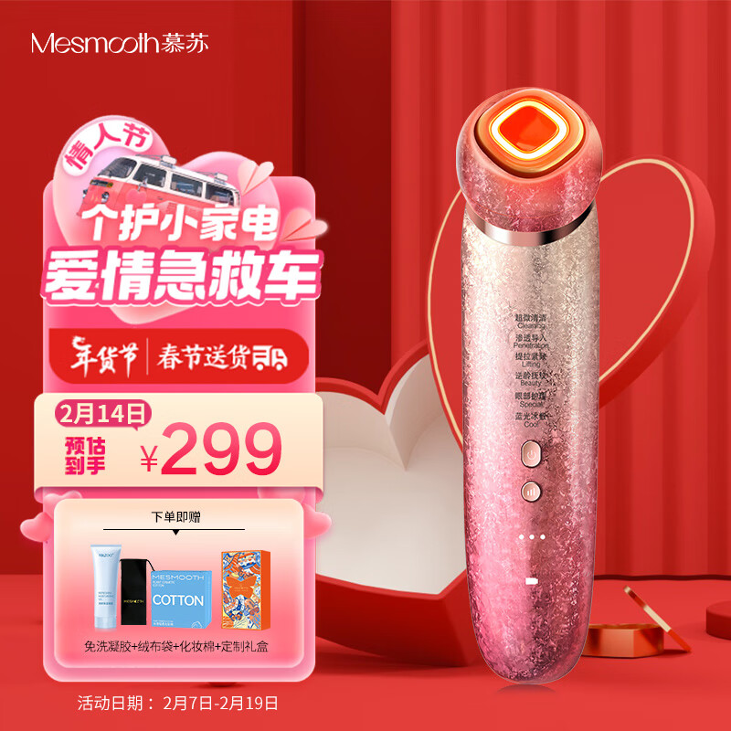 MESMOOTH慕苏美容仪脸部眼部按摩仪提拉紧致家用清洁去黑头导出导入仪光子嫩肤礼物送女友 星钻红Pro价格:389.00元!