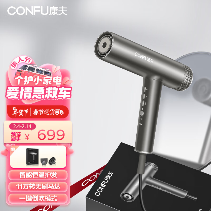 康夫(CONFU)高速电吹风机家用大功率生日情人节礼物大风力负离子速干吹风筒护发廊 KF-K9 摩卡棕价格:739.00元!