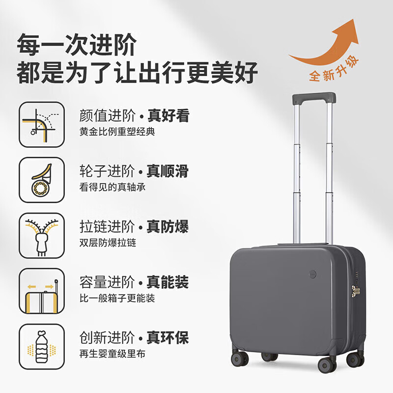 米熙高颜值小行李箱男登机箱子拉杆箱包旅行箱男密码箱18英寸矿岩灰36价格:389.00元!