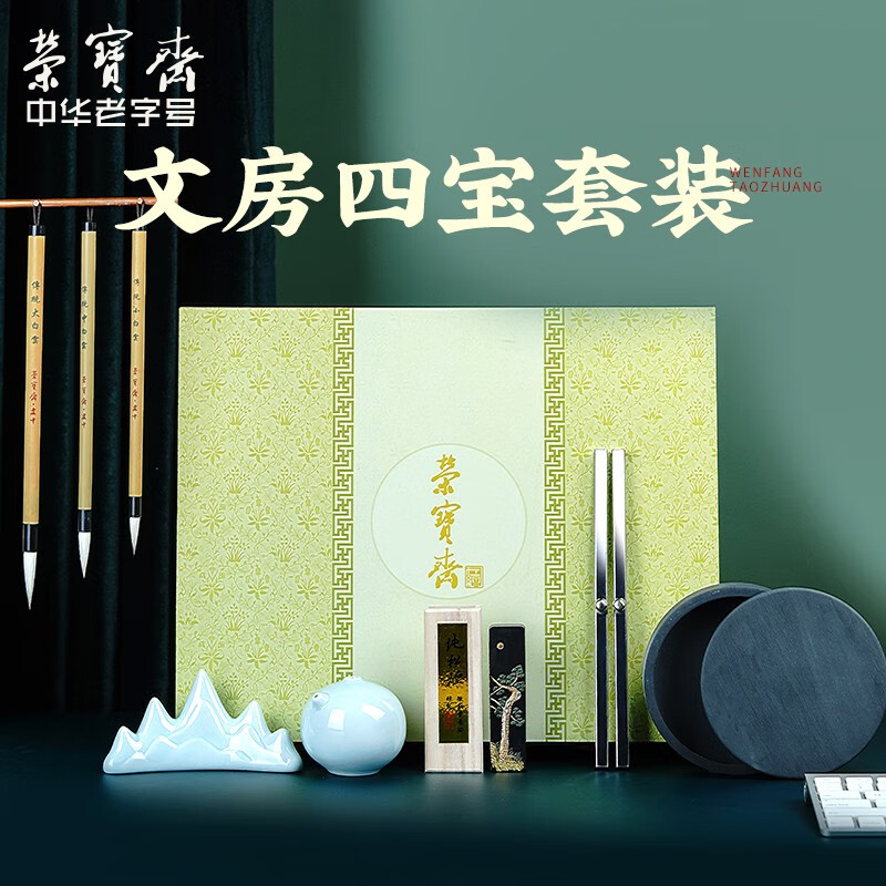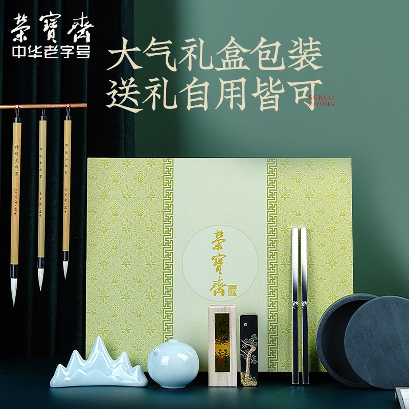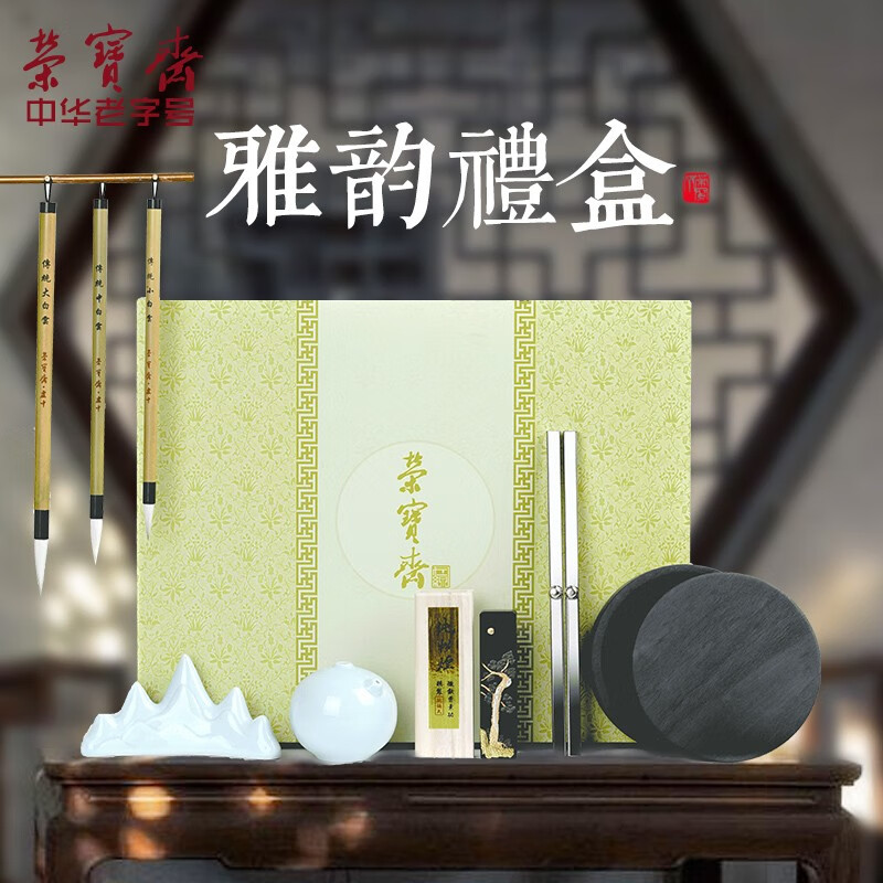 荣宝斋 文房四宝毛笔套装 宣纸砚台镇尺自用送礼文具笔墨纸砚礼盒 雅韵-精品礼盒装价格:299.00元!