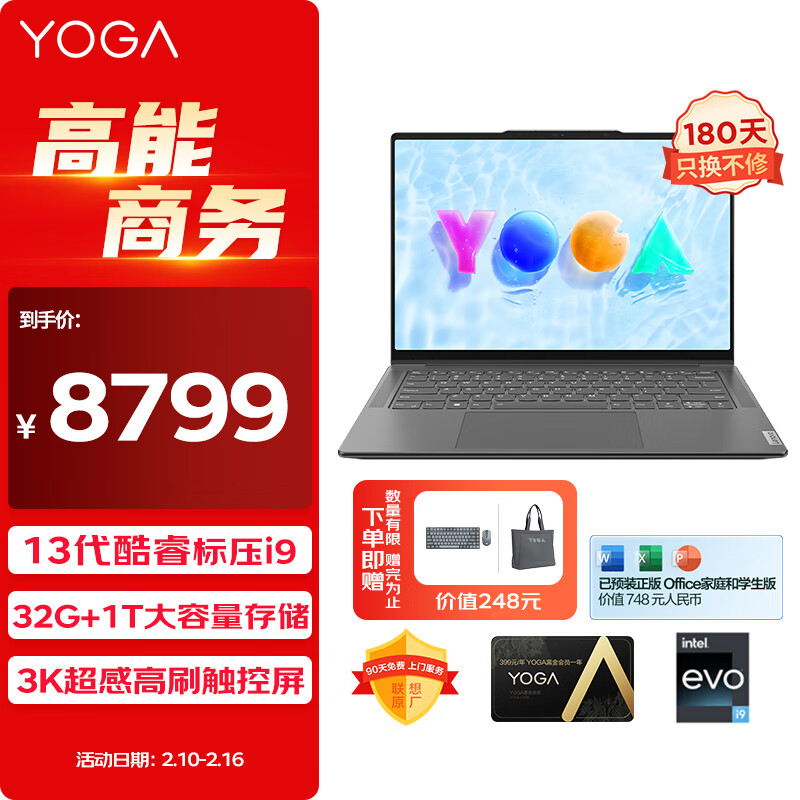 联想笔记本电脑YOGAPro14s轻薄本 13代酷睿英特尔Evo平台 14.5英寸商务本(i9-13900H 32G 1T 3K高刷屏)价格:8799.00元!