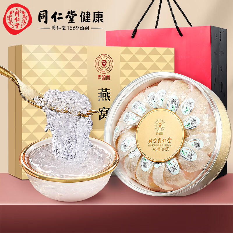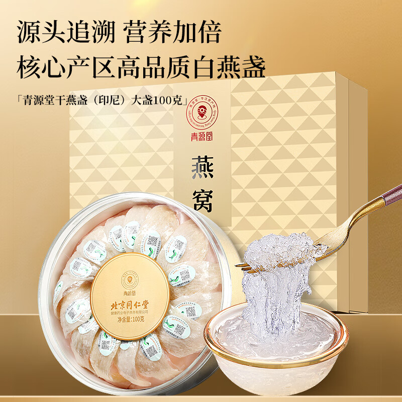 北京同仁堂 青源堂【年货礼盒送礼】印尼进口燕窝干盏 大盏100克 燕盏干燕窝产后孕妇补品老人女性滋补品女营养品溯源燕窝礼盒礼品价格:4941.00元!