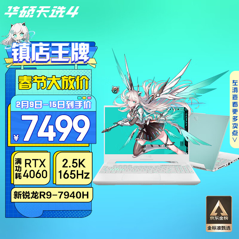 华硕天选4 锐龙版 高性能电竞游戏本笔记本电脑(新R9-7940H 16G 512G RTX4060 2.5K 165Hz P3广色域)青价格:7499.00元!