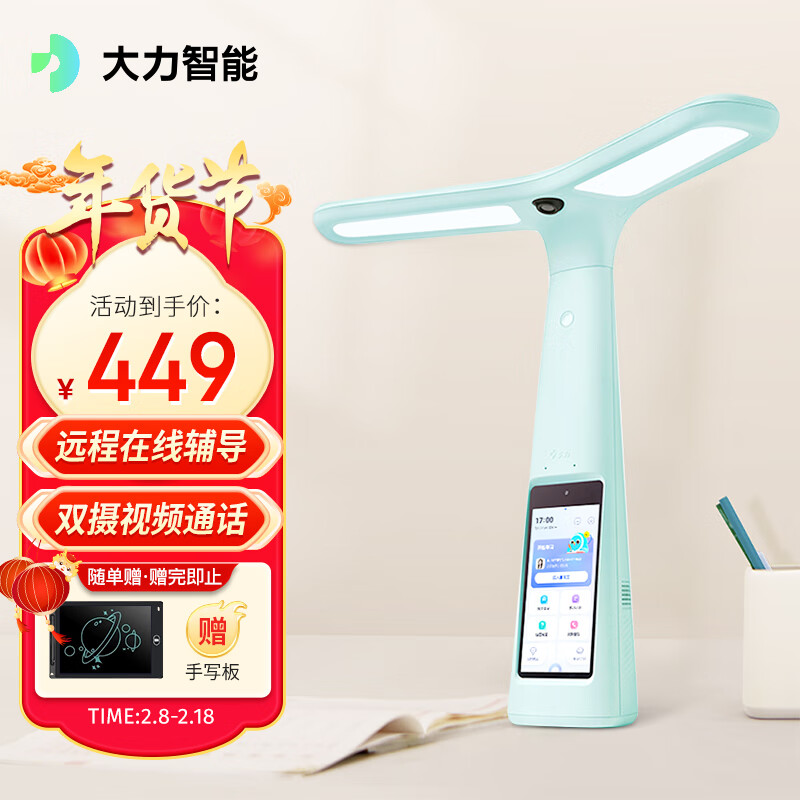 大力智能学习灯T5 国AA级减蓝光护眼台灯 家教机小学生学习辅导 学生平板电脑 大力神灯DLSD-H1湖水蓝价格:499.00元!