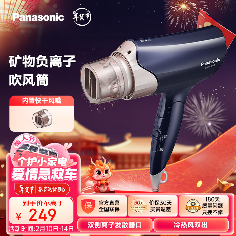 松下(Panasonic)吹风机大功率高速速干折叠便携 负离子护发家用吹头发电吹风筒EH-WNE6C藏青色价格:279.00元!