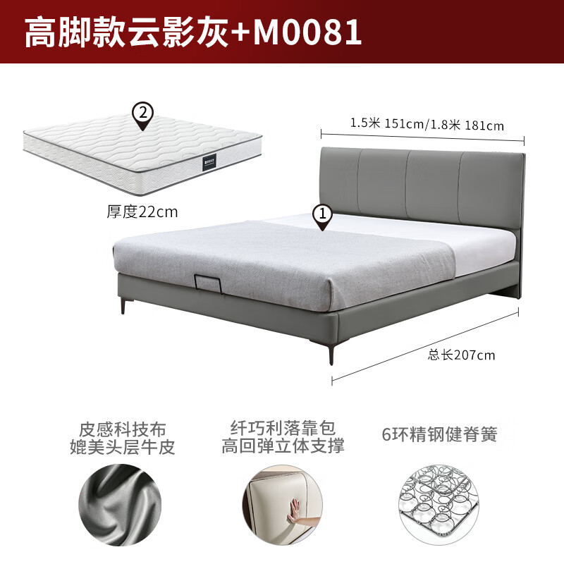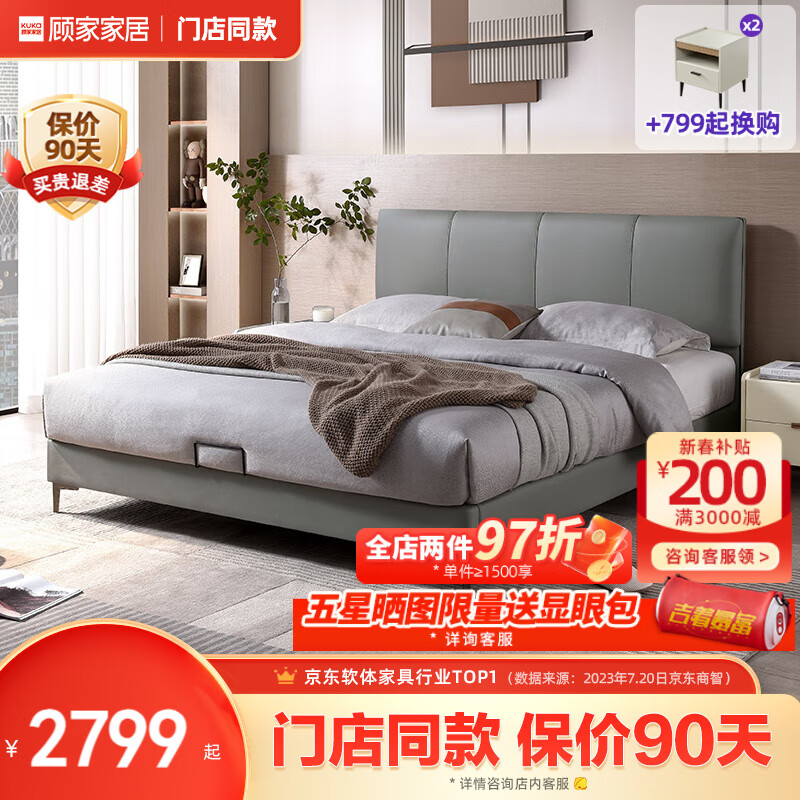顾家家居(KUKA)简约布艺床科技布床双人床主卧DS9052B +M0081【云影灰】1.5春节后发货价格:2799.00元!