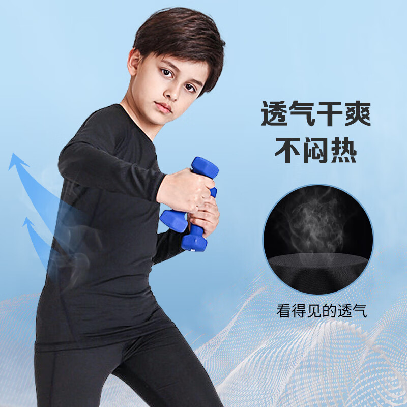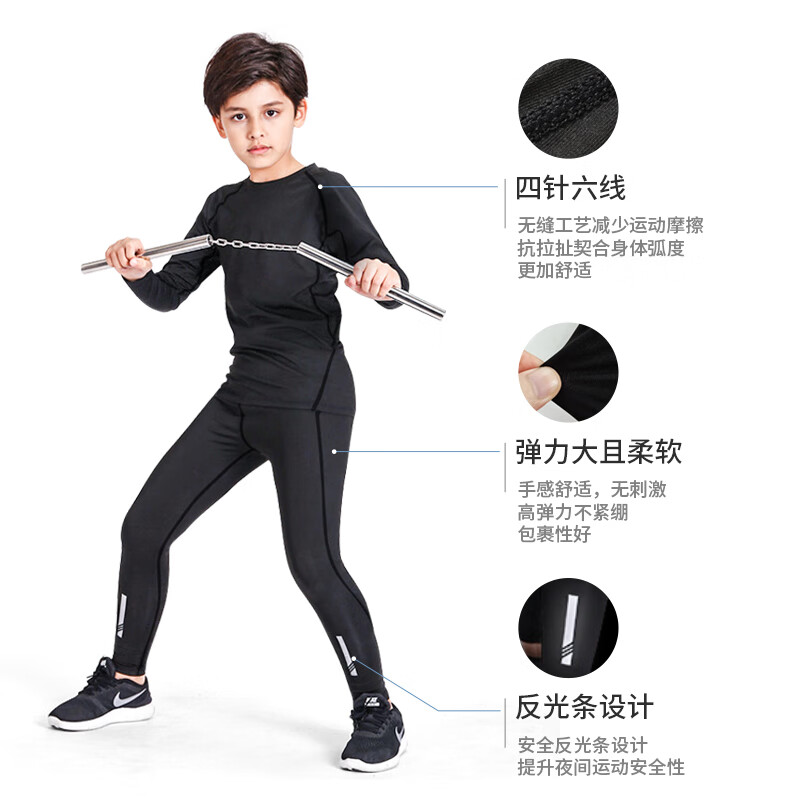 范迪慕儿童运动套装男紧身衣训练跑步青少年球服打底衫健身服 黑色-28码价格:79.00元!