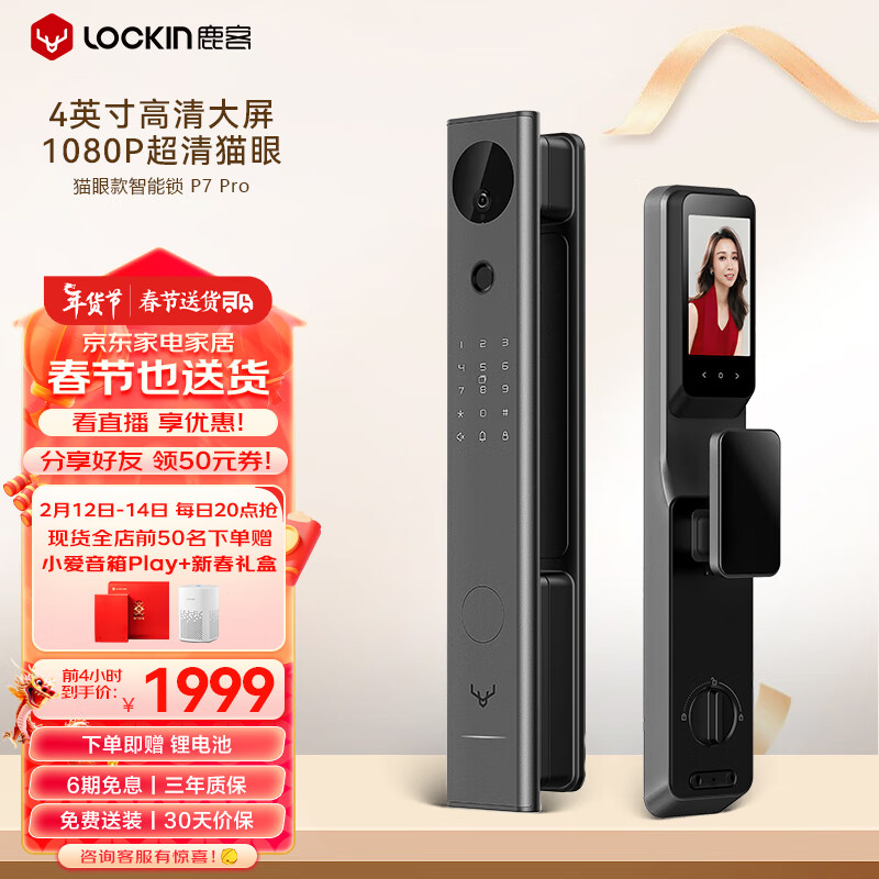 鹿客(lockin)P7 Pro 可视猫眼大屏指纹锁智能门锁电子锁密码锁价格:2299.00元!