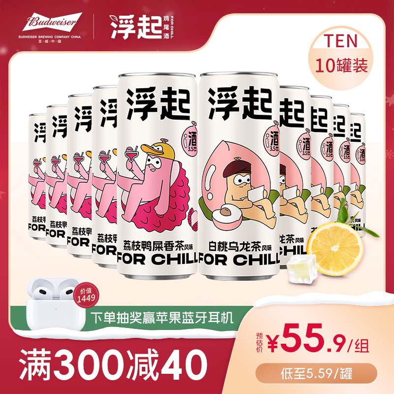 浮起百威鸡尾酒预调酒洋酒果酒气泡酒鸭屎香白桃乌龙混合330ml*10罐价格:80.00元!