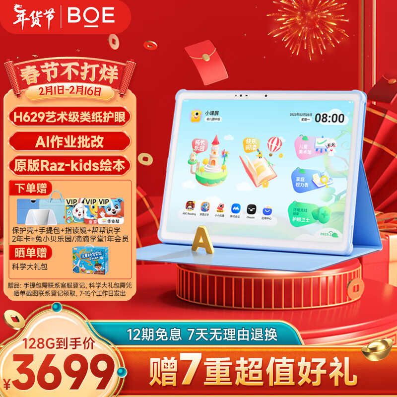BOE京东方小课屏A1灵动版6+128G 学生学习平板 小学初高中家教早教网课学习机类纸护眼 全套原版RAZ价格:3699.00元!