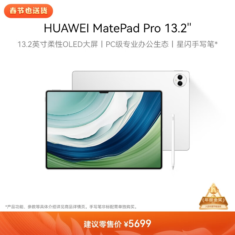 HUAWEI MatePad Pro 13.2英寸 华为平板电脑144Hz OLED柔性护眼屏星闪连接办公创作12+256GB WiFi 晶钻白价格:5699.00元!