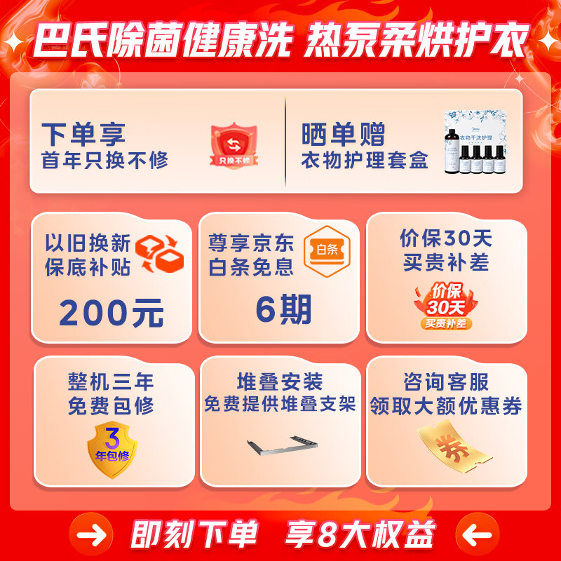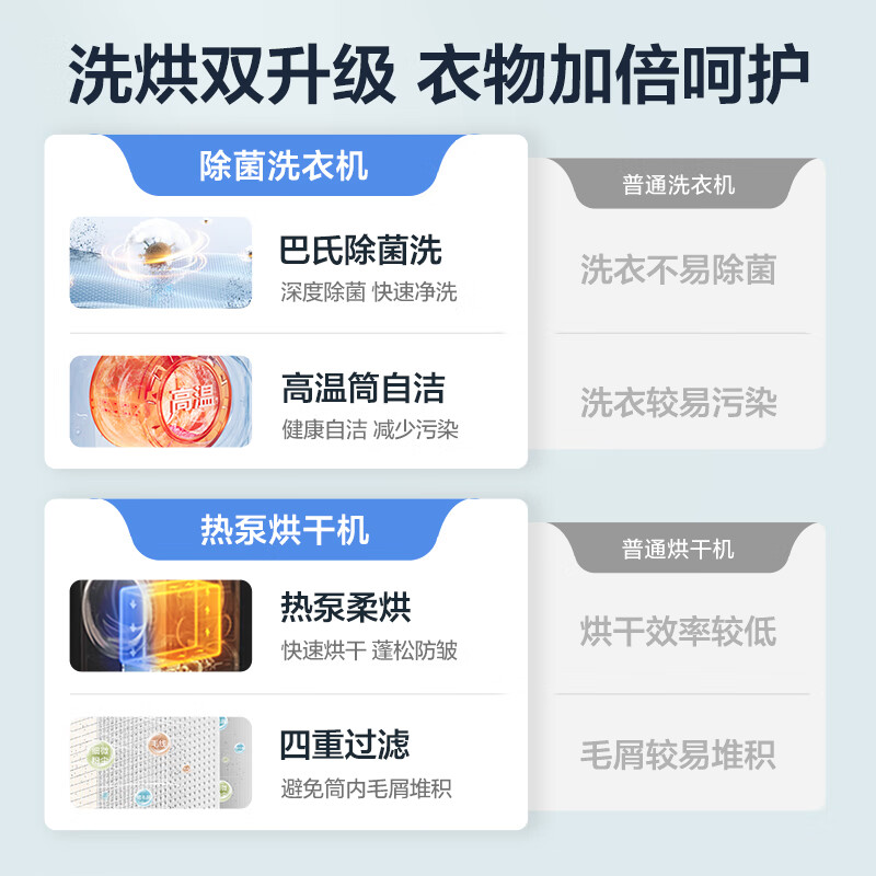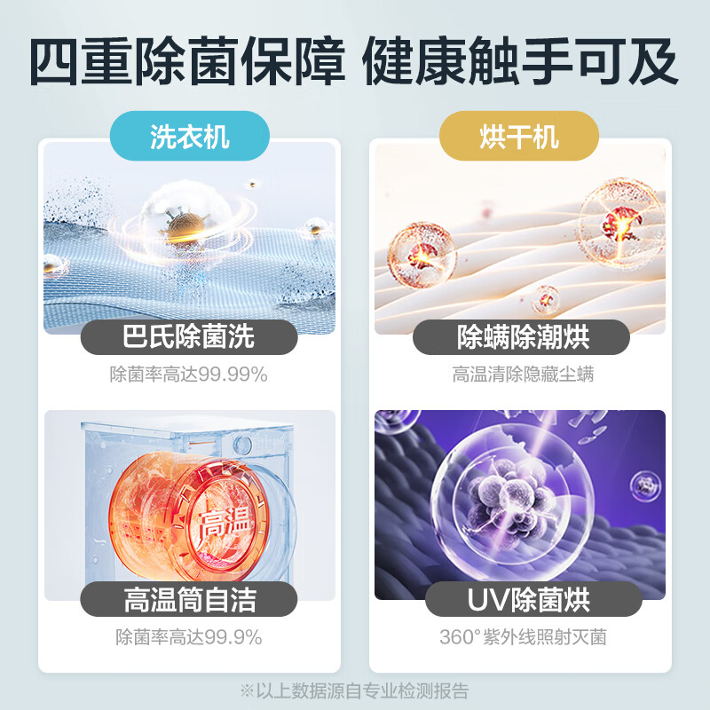 美的(Midea)洗烘套装10kg滚筒洗衣机全自动+热泵烘干机家用 智能家电 除菌除螨除潮 MG100V33WY+MH100VH03Y价格:4599.00元!