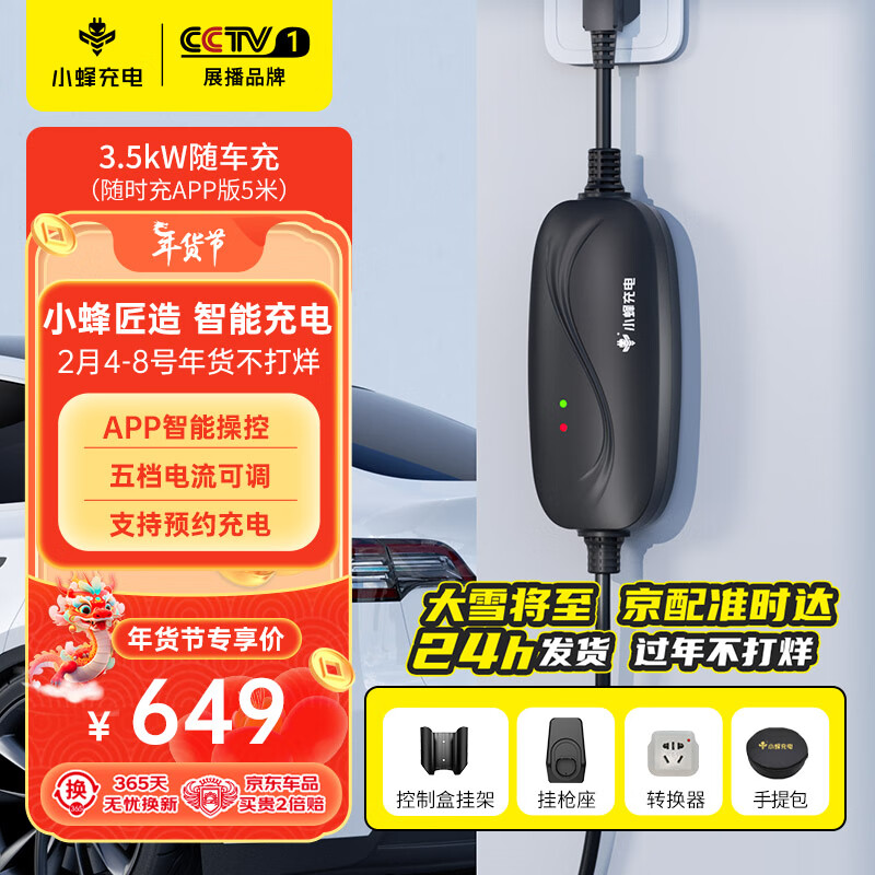 小蜂充电(HIVEWALLBOX)3.5kW便携随车充新能源汽车充电器App智能款外出旅行必备-随时充5米价格:739.00元!