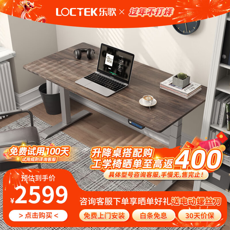 乐歌双电机电动升降电脑桌电竞站立办公学习写字书桌1.4m灰木纹E5N价格:2869.00元!