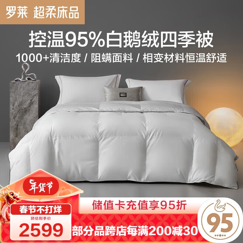 罗莱家纺 绒立方95%白鹅绒羽绒被四季被子700g 200*230cm白色价格:3599.00元!