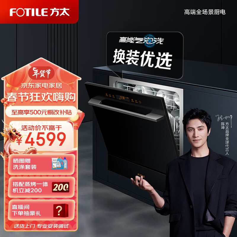 方太洗碗机嵌入式家用 高能气泡洗 11套大容量 全自动 热风烘干高温除菌 一级水效 30min超快洗 NJ01价格:4599.00元!