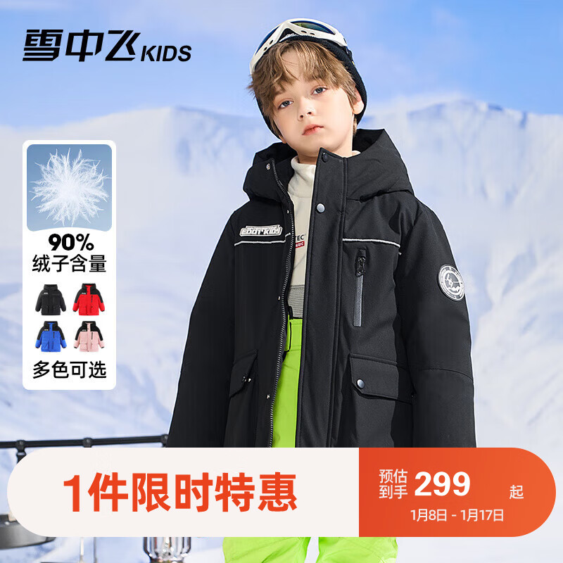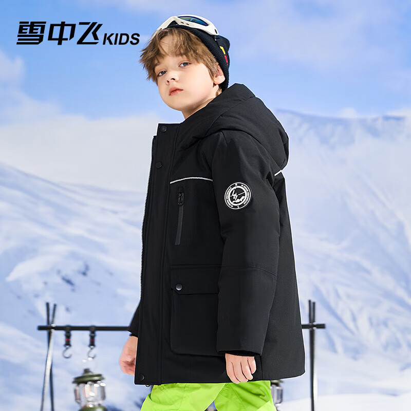 雪中飞【蓄热】儿童羽绒服男女童中大童工装拼接加厚羽绒服黑色160cm价格:699.00元!
