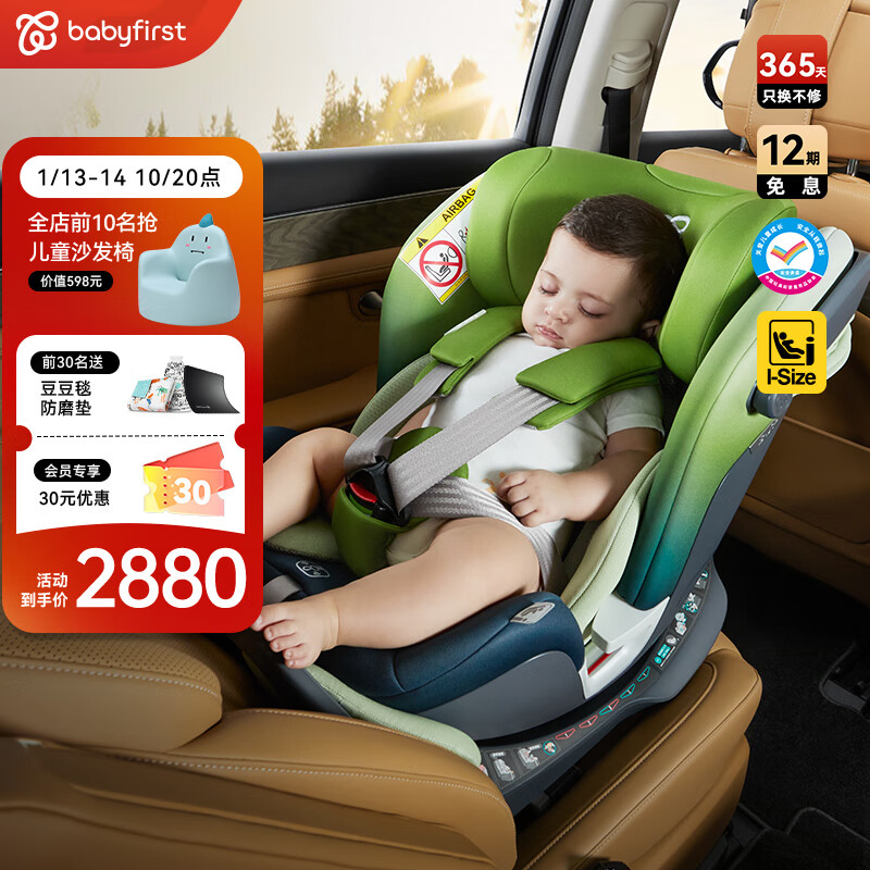 宝贝(Babyfirst)灵悦Pro婴儿童座椅汽车用0-4-7岁宝宝车载可躺 松针绿R155B价格:3380.00元!