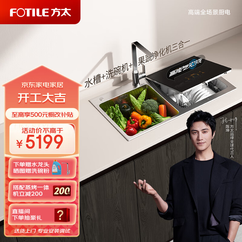 方太(FOTILE)洗碗机水槽式家用 跨界三合一 全自动洗烘一体 高能气泡洗 加强除菌 洗海鲜果蔬去农残 C3A价格:5199.00元!