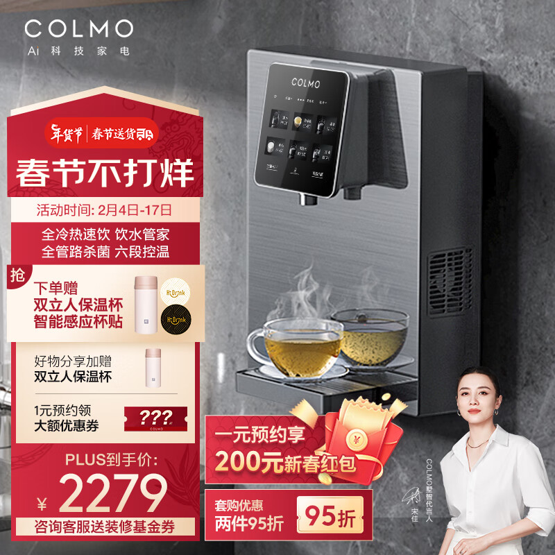 COLMO家用净水器伴侣管线机 全通量匹配 高温杀菌智能感应取水 加热直饮 壁挂式饮水机 CWG-RA08价格:2399.00元!