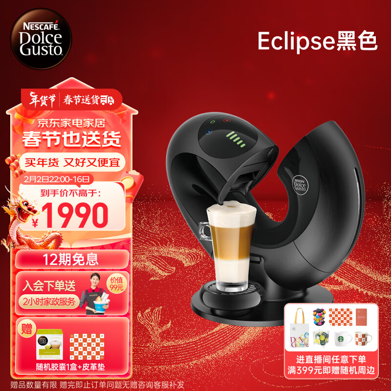 DOLCE GUSTO雀巢 全自动胶囊咖啡机 Eclipse黑色 商务智能触控 家用 办公价格:1990.00元!