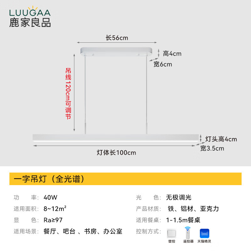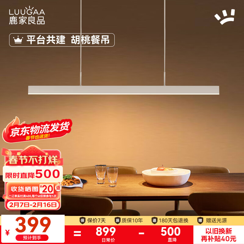 鹿家良品(LUUGAA)胡桃一字餐厅吊灯现代极简全光谱高显指护眼吧台餐桌灯中山灯具价格:899.00元!