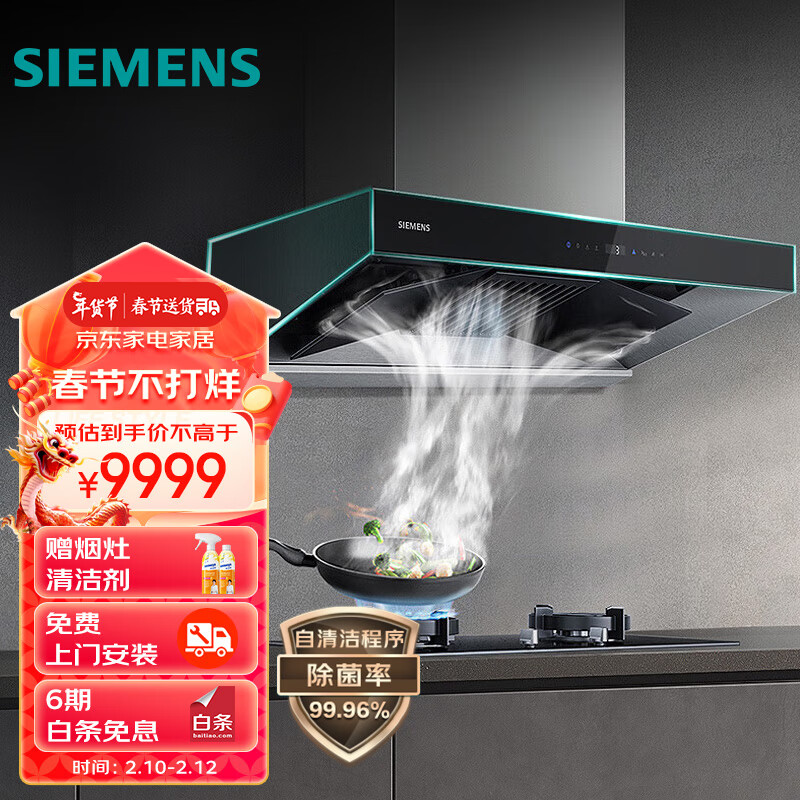 西门子(SIEMENS)欧吸式家用抽油烟机 智能展翼油烟机 智能双拢双吸自清洁 大吸力26m3/min风量 LC88FC958W价格:10199.00元!