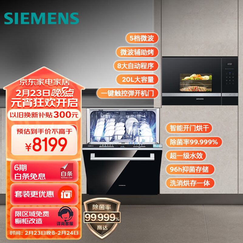 西门子14套大容量嵌入式家用洗碗机智能开门烘干 嵌入式微波炉组合套装 636Pro(含黑门板)+BE525价格:8199.00元!