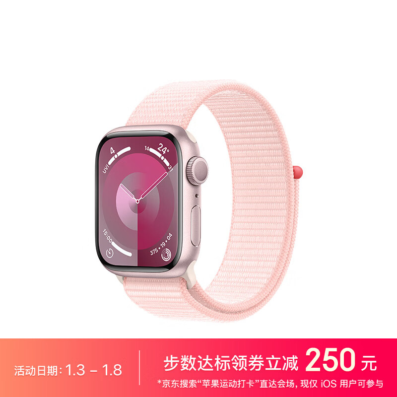 Apple Watch Series 9 智能手表GPS款41毫米粉色铝金属表壳 亮粉色回环式运动表带 健康手表S9 MR953CH/A价格:2999.00元!