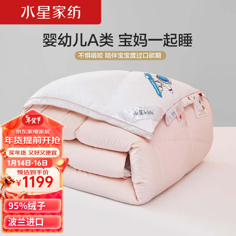 水星儿童 太空人 A类波兰进口95%白鹅绒羽绒被 冬被约390g填充120*150cm白价格:2099.00元!
